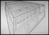 "Plan for My Coffin Cage" 2000, pencil and ink on paper, 22-1/2" x 30"