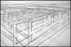 "Plan for My Cage in a Cage in a Cage" 2005, pencil and ink on paper, 22-1/2" x 30"